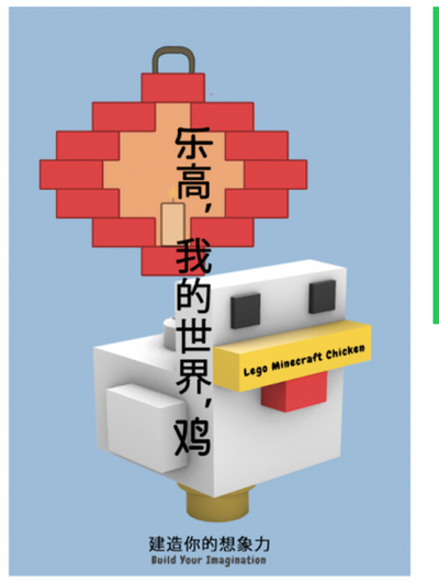 I then implemented the LEGO Minecraft chicken into the poster. This is where the Chinese cultural element comes into play. To portray the cultural aspect, I incorporated lanterns, Chinese typography, and colours. As mentioned before, the aim is to identify similarities between the two things, whether there are items within the Minecraft editions/mods or traditional colours in China.